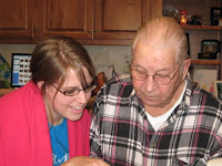 Tonight, Daniel and Kristen played a few songs on the piano and sang a few more. During the Christmas carols, we all sang along - Grandma too. Happiness shone from her face, a simple reminder that there was still emotion, still some coherence under that thinning, silver hair. When Grandpa saw her glowing as she was, his eyes welled with tears. He sure does love her. Someday I hope to have a man who loves me the way that he does Grandma - It's beautiful.